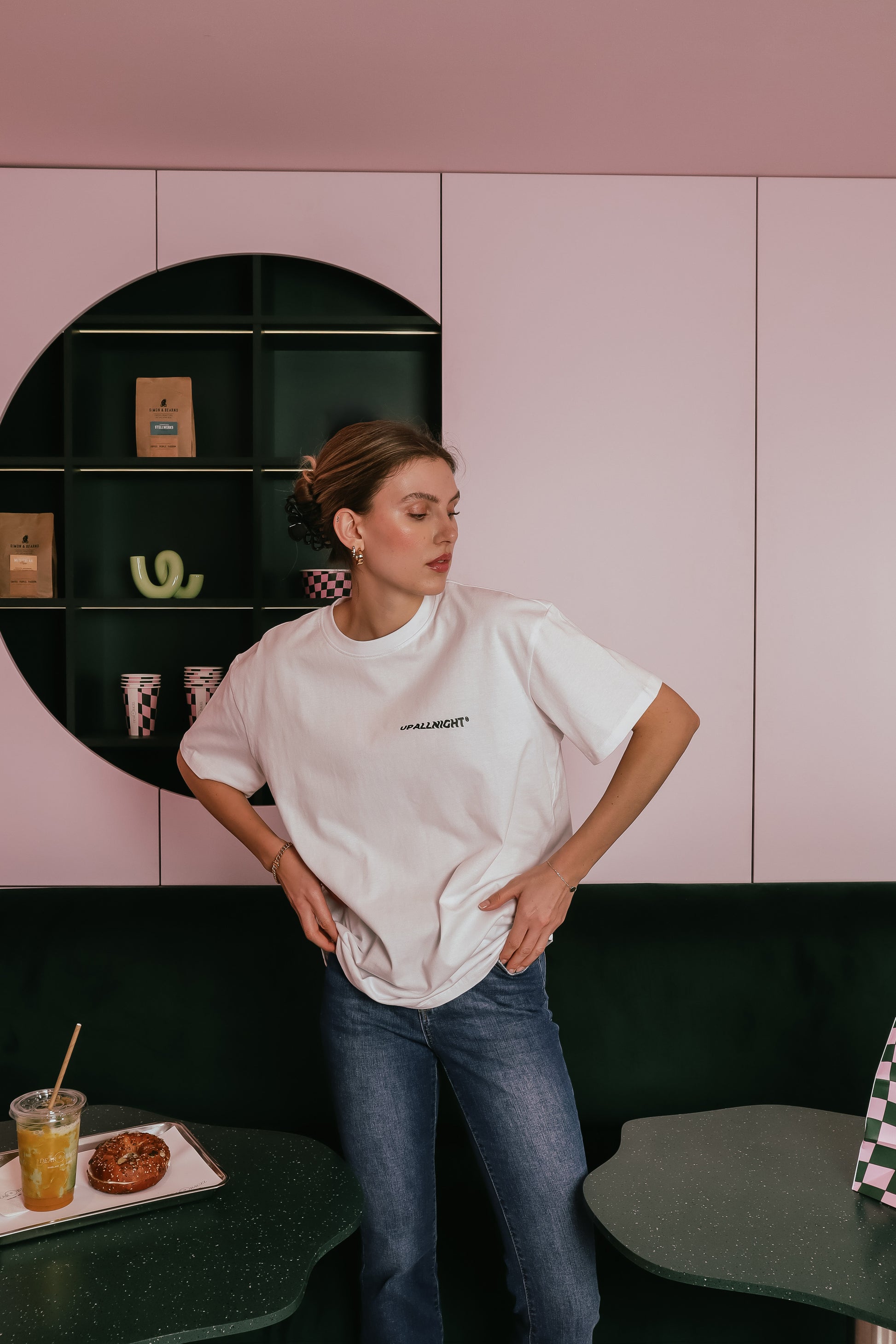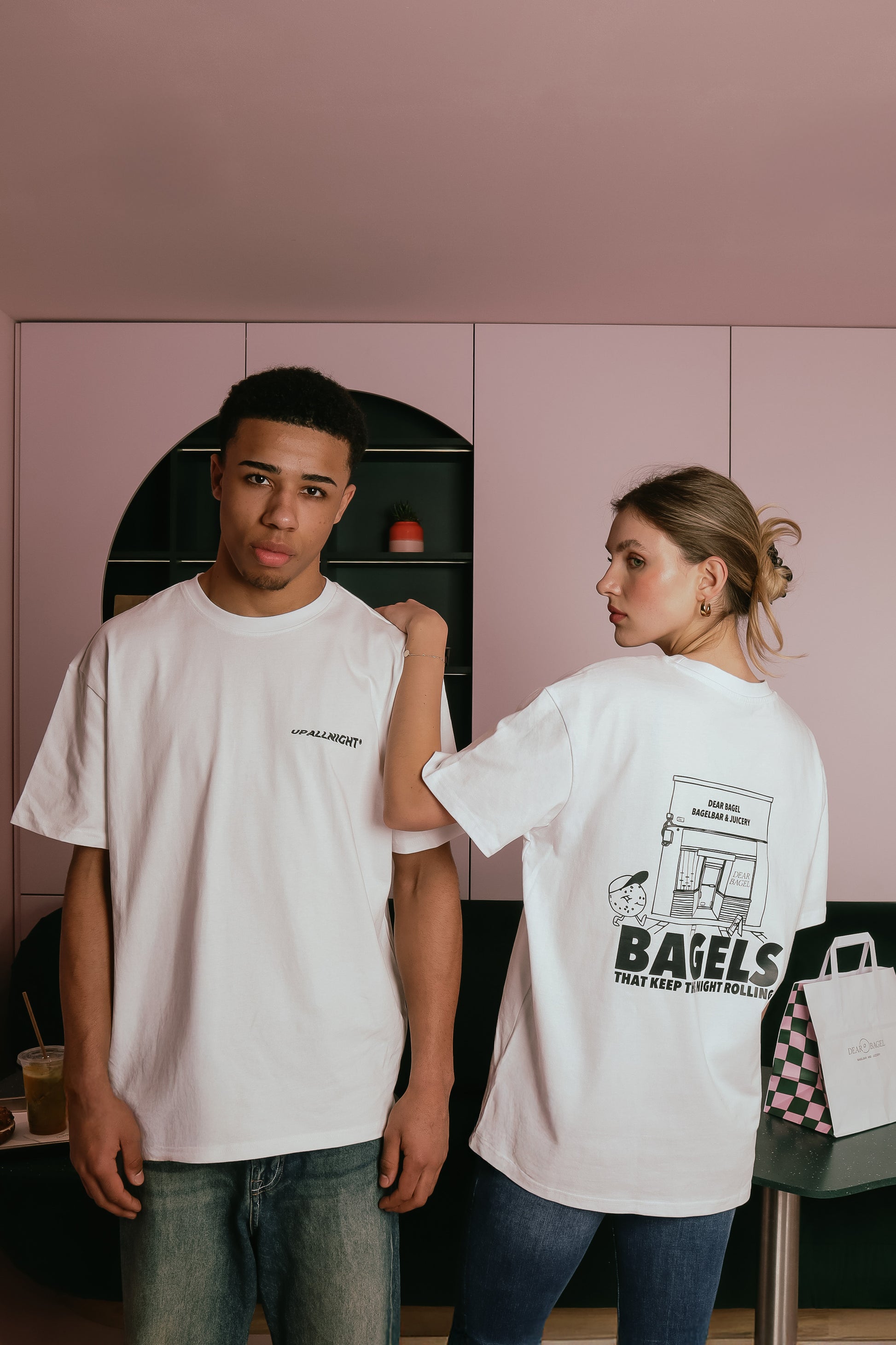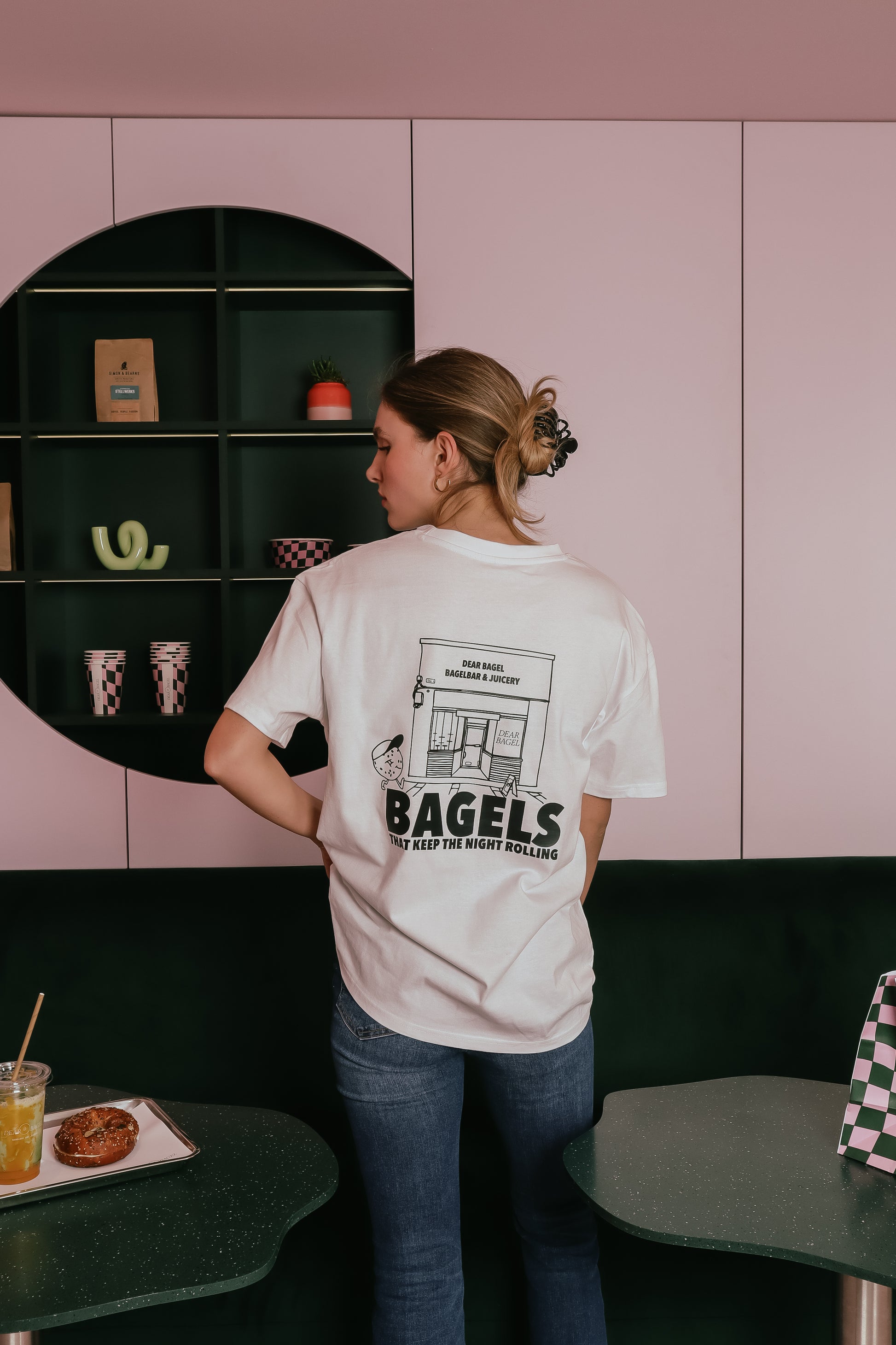 "SHOP" bringt den Dear Bagel Vibe auf dein Shirt - mit einem verspielten Comic-Design, das die Außenansicht des Shops stylisch in Szene setzt.