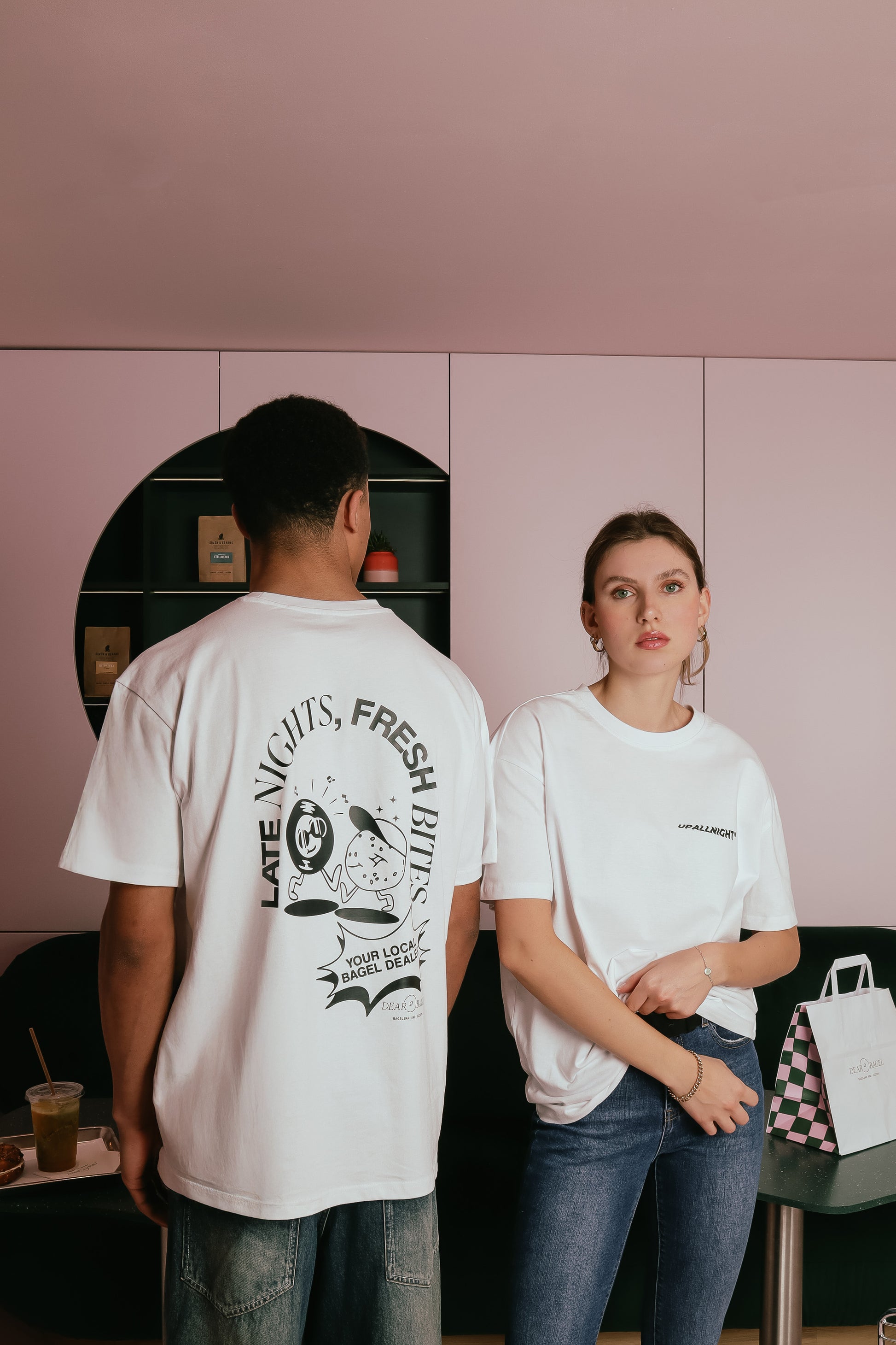 "LATE NIGHTS, FRESH BITES" fängt den Spirit der Kollaboration ein - ein dynamisches Design, das die Party-Vibes mit der Frische eines perfekten Bagels kombiniert.