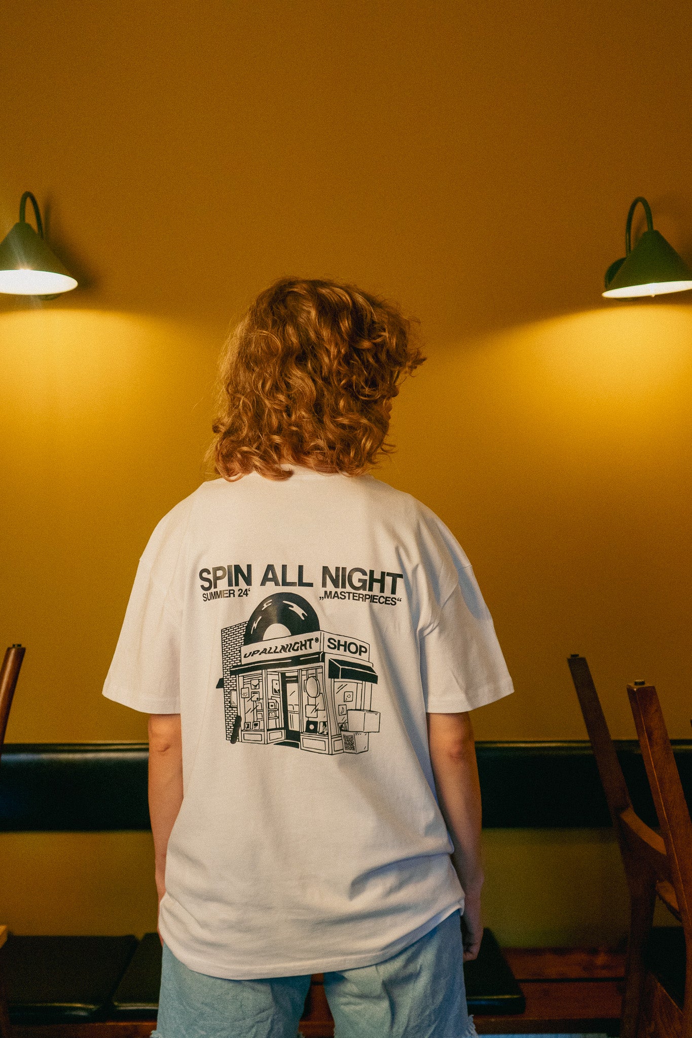 "SHOP" ist ein verspieltes Design, das die Außenansicht eines Comic-Shops zeigt. Das Kunstwerk fängt die Essenz einer lebhaften Musikszene ein und lädt dich ein, die rhythmische Welt dahinter zu entdecken. Ein besonderer Touch wird durch eine Kiste hinzugefügt, auf der sich ein QR-Code befindet, der dich direkt zur offiziellen Website führt.